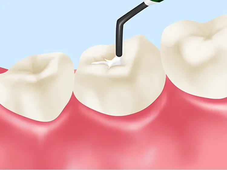 奥歯は噛み合わせの溝が深く、汚れが溜まりやすいのが難点です。そこで、奥歯の溝を歯科用プラスチック(レジン)で埋める処置を「シーラント」といいます。表面がツルツルになることで歯みがきがしやすくなり、虫歯のリスクを軽減できます。生えたての永久歯や、乳歯に対しても有効な処置です。